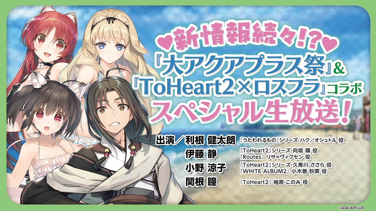 - 『うたわれるもの ロストフラグ』が2024年8月1日より『ToHeart2』とのコラボイベントを開催