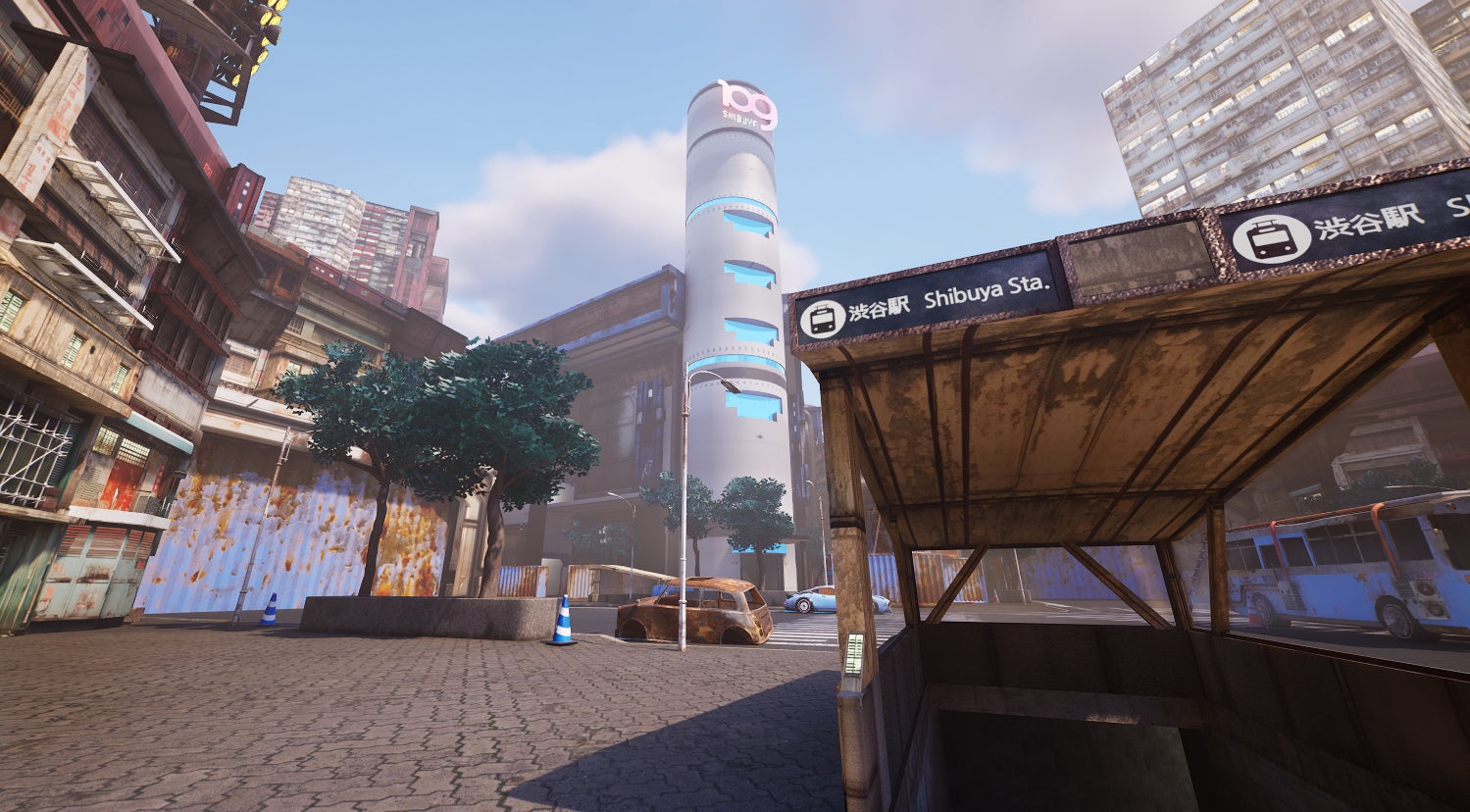 中央のスクランブル交差点を挟んで、各チームが自拠点を守りながら戦い、多彩な武器やアイテムを駆使した戦略的なプレイが求められます。
