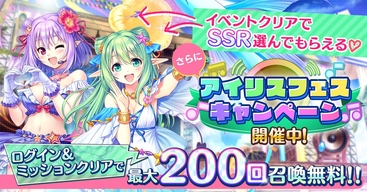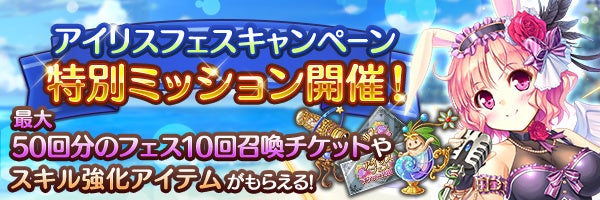 また、アイリスフェスを盛り上げるために、毎日ログインすることで最大150回の召喚が可能な『フェス10回召喚チケット』や、特別ミッションでさらにチケットを獲得できるキャンペーンも実施中です。