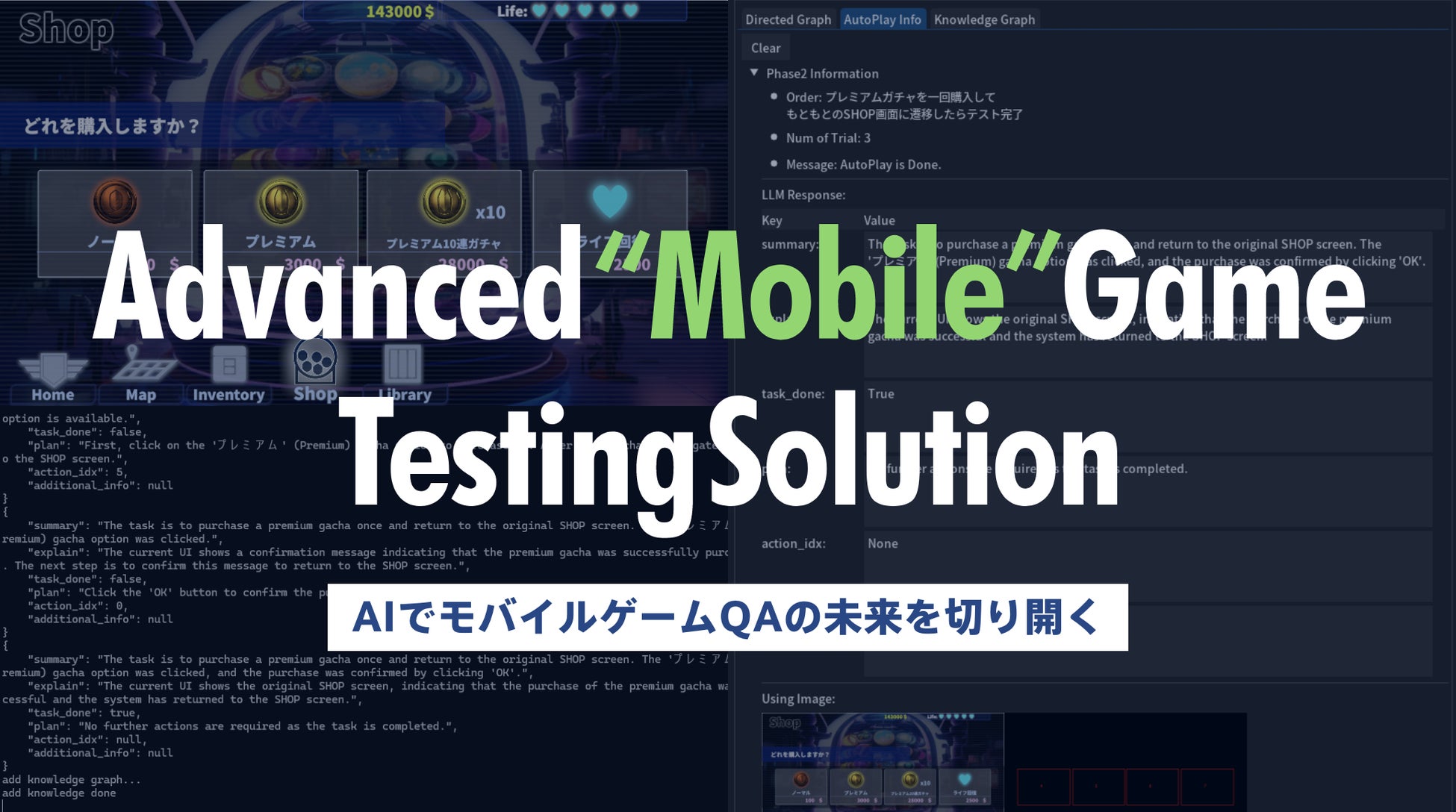 - ゲームQAをAIで自動化し、開発者の負担軽減を目指す。