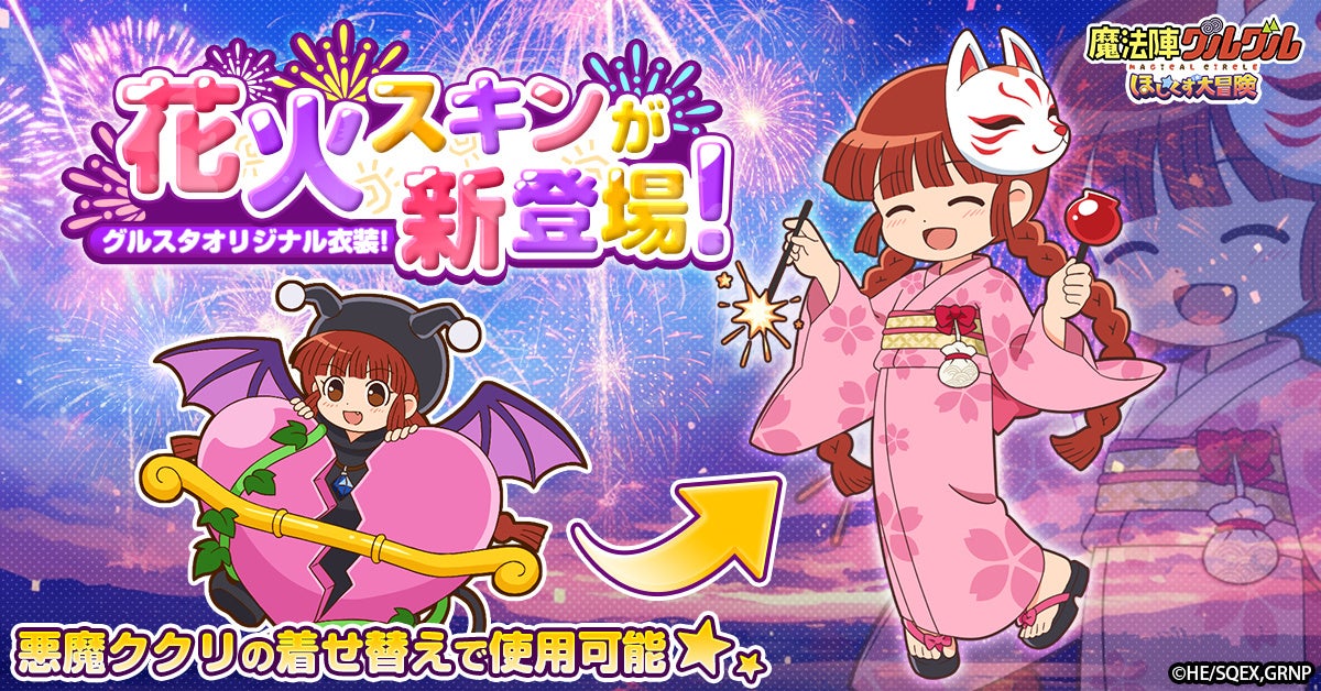 ゲームタイトル「魔法陣グルグル ほしくず大冒険」にて、初のゲームオリジナル衣装「花火ククリ」が登場しました。