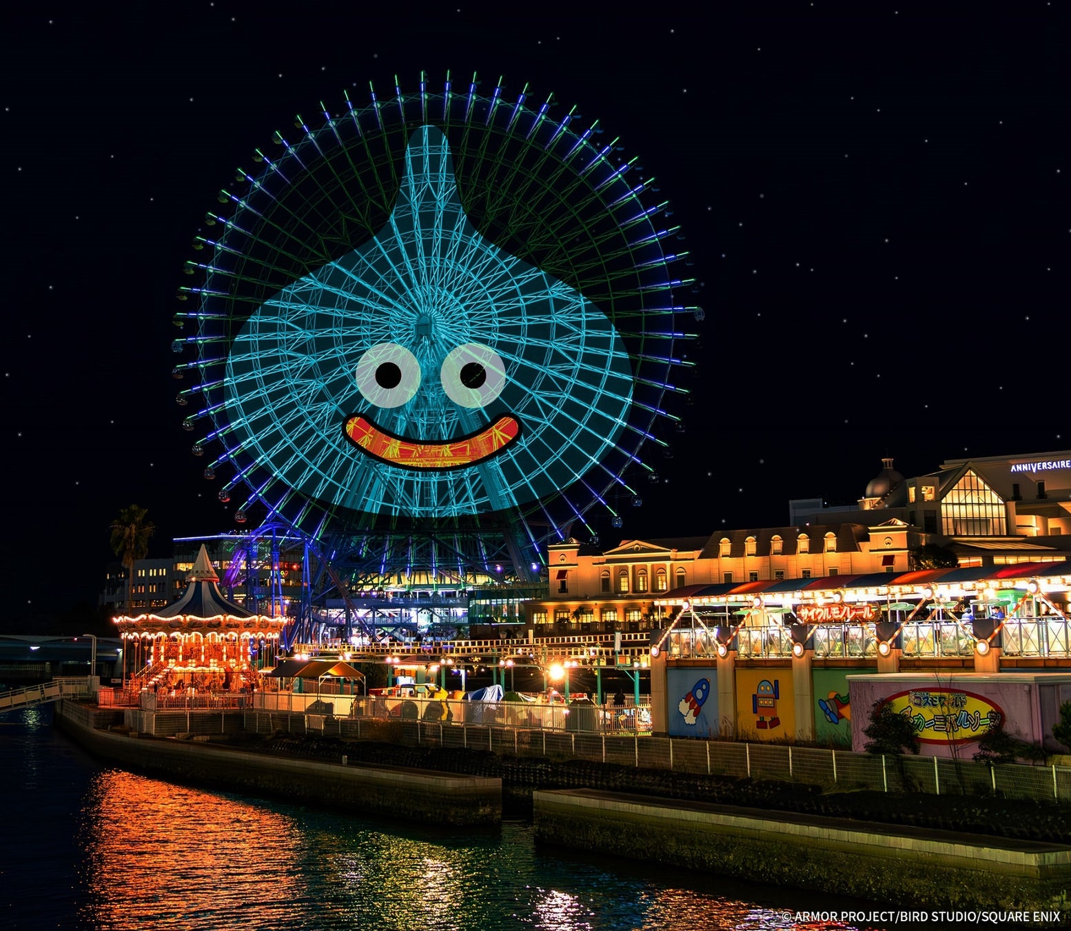 横浜の名所がスライムカラーにライトアップされるほか、大観覧車「コスモクロック21」では特別演出も行われ、花火イベント「横浜スパークリングトワイライト」ではドラゴンクエストをテーマにした花火が打ち上げられます。