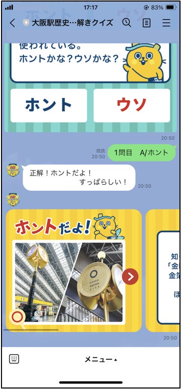 - JR西日本は、大阪駅開業150周年を記念して「大阪駅歴史ヒモ解きクイズ」をLINEで実施。