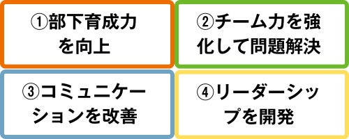 - 部下育成やチーム力強化のための4つのパッケージを提供。