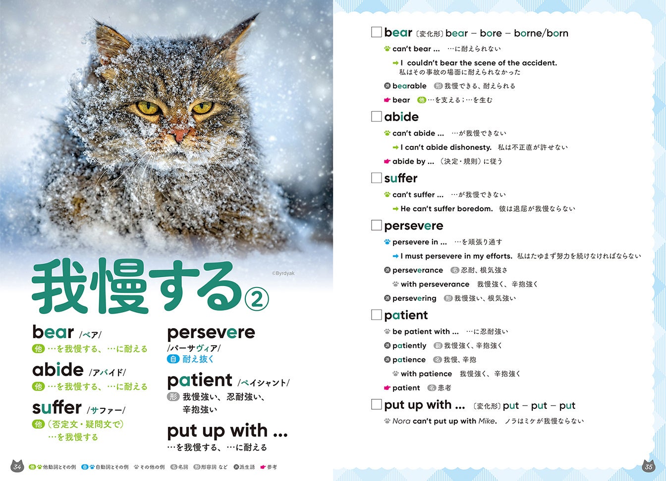 猫好きの人にとっては楽しい写真と一緒に、英単語や熟語を覚えることができます。