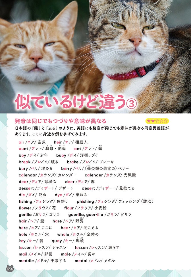 単語や熟語を覚えるには、本書を何度も読んでもらわなければなりません。そこで、読者の方が何度も見たくなるような、くすっと笑えてカワイイ猫の写真を厳選。繰り返し楽しんでもらえるように努めました。