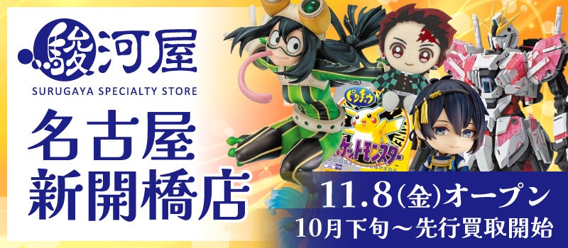 - 11月8日(金)に名鉄「神宮前駅」から徒歩6分の「駿河屋 名古屋新開橋店」がオープン。
