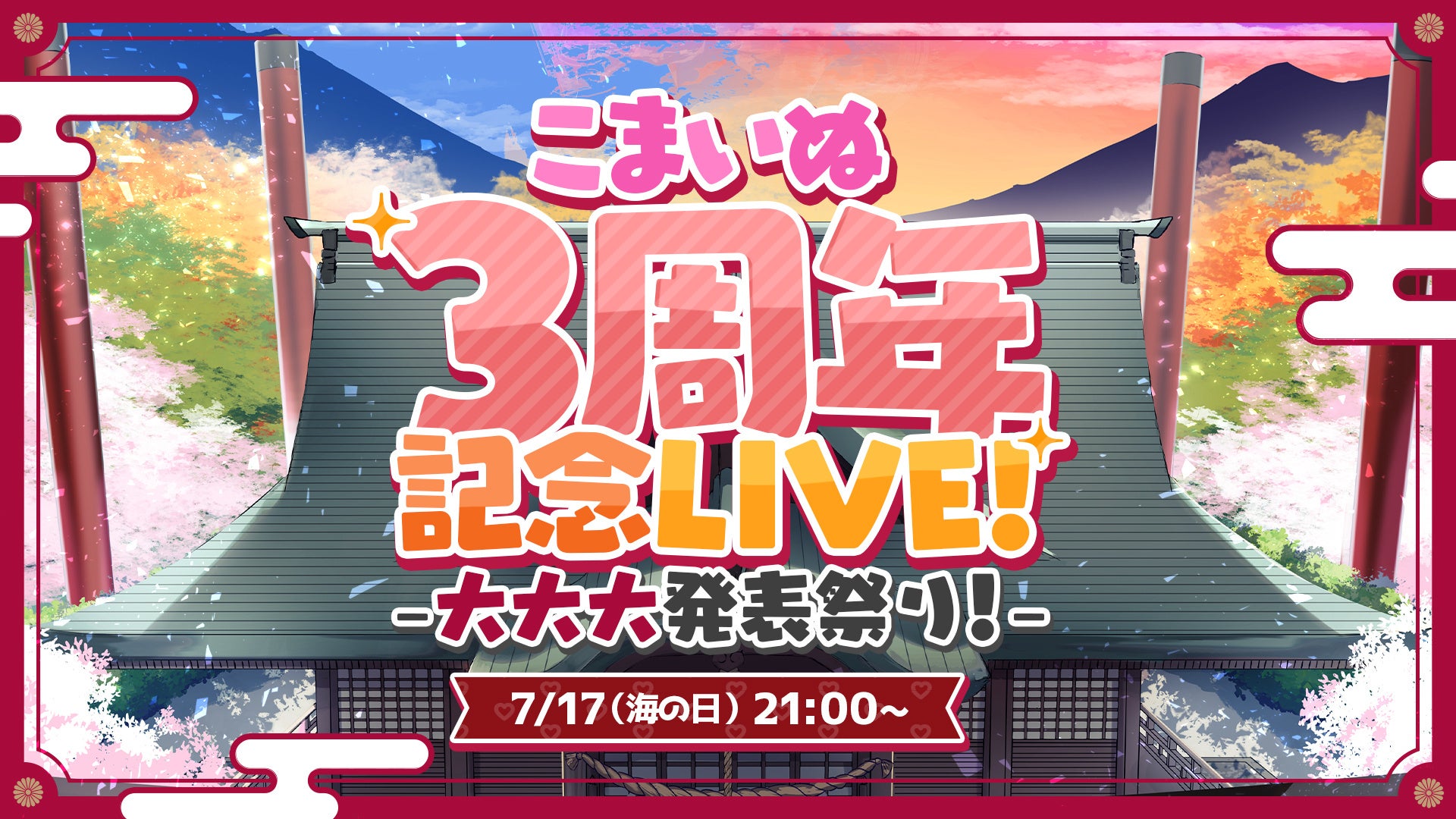 こまいぬは、神社の守り神であり、3周年を迎える記念に素敵なライブを開催することを喜んでいます。