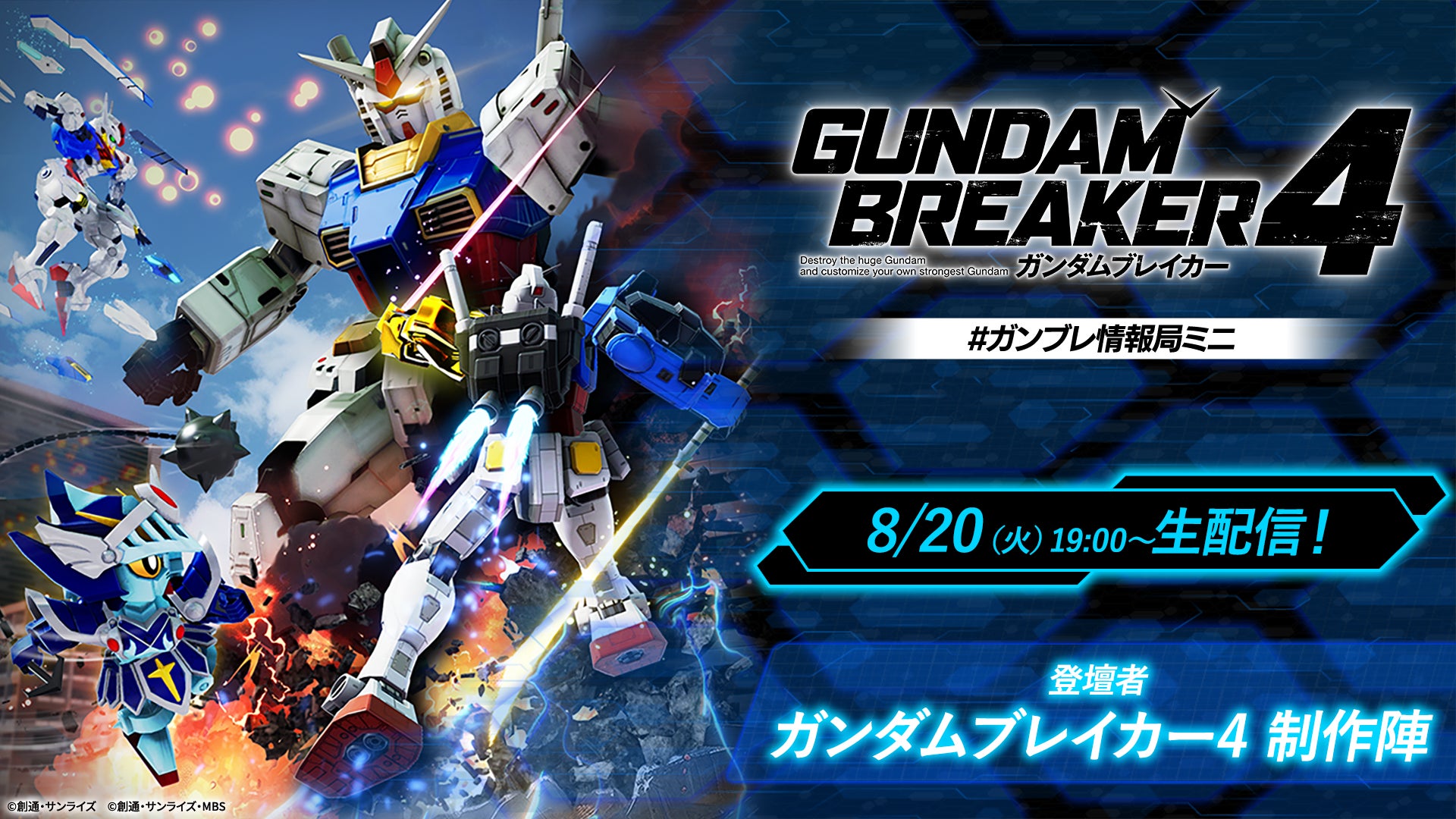 ゲームの新情報は、8月20日に放送される「ガンダムブレイカー4 #ガンブレ情報局ミニ Vol.4」で確認できます。