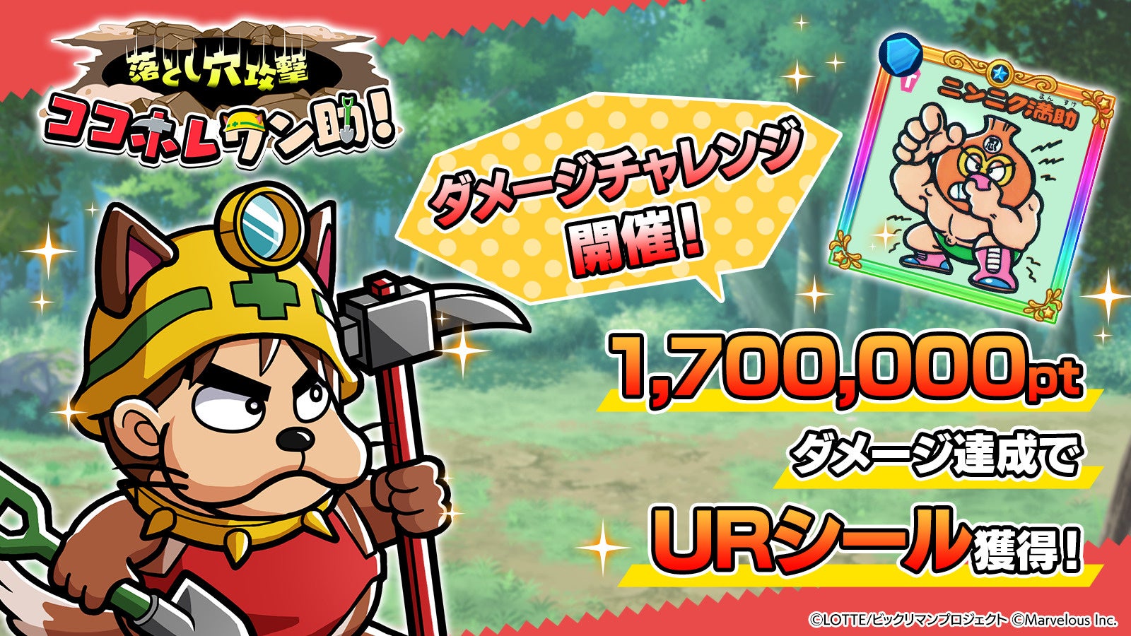 また、ダメージチャレンジイベント「落とし穴攻撃 ココホレワン助!」も同期間中に開催され、特定のポイント達成でURシールが獲得できます。