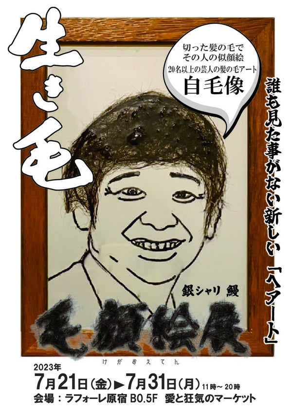 もう1つは「毛顔絵展」で、芸人の髪の毛を使って似顔絵を描いたヘアート作品が展示されます。