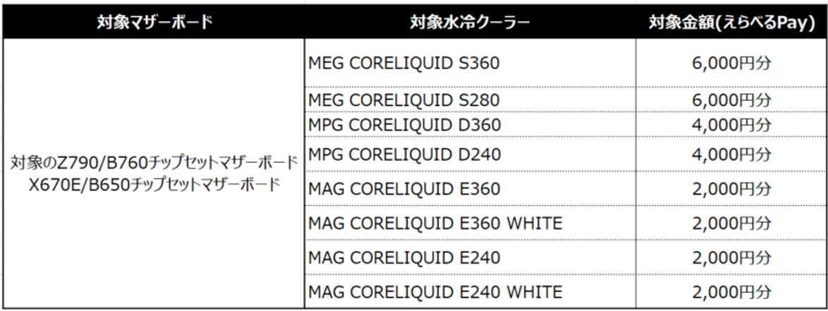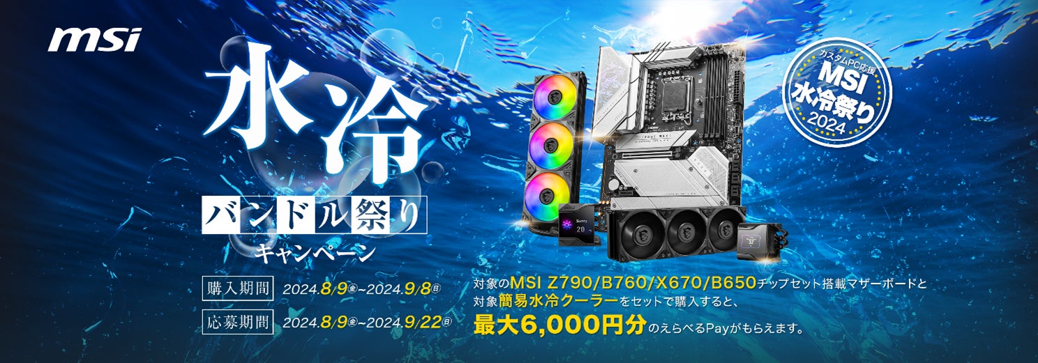 - MSIは2024年8月9日から9月8日まで「水冷バンドル祭りキャンペーン2024」を開催。