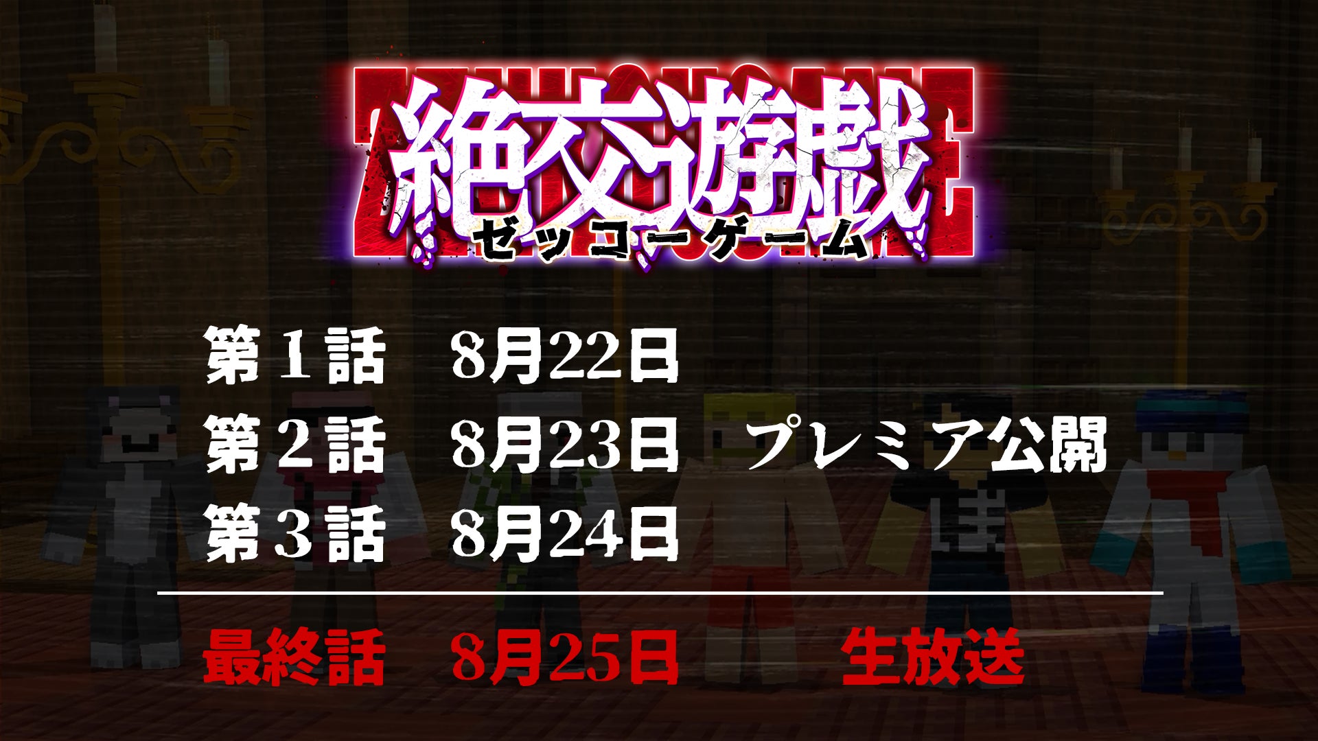 株式会社ドズルが新たに発表した大型企画『絶交遊戯(ゼッコーゲーム)』は、2024年8月22日から8月24日の3夜連続でYouTubeチャンネル「ドズル社」にてプレミア公開され、最終話は8月25日に生放送されます。