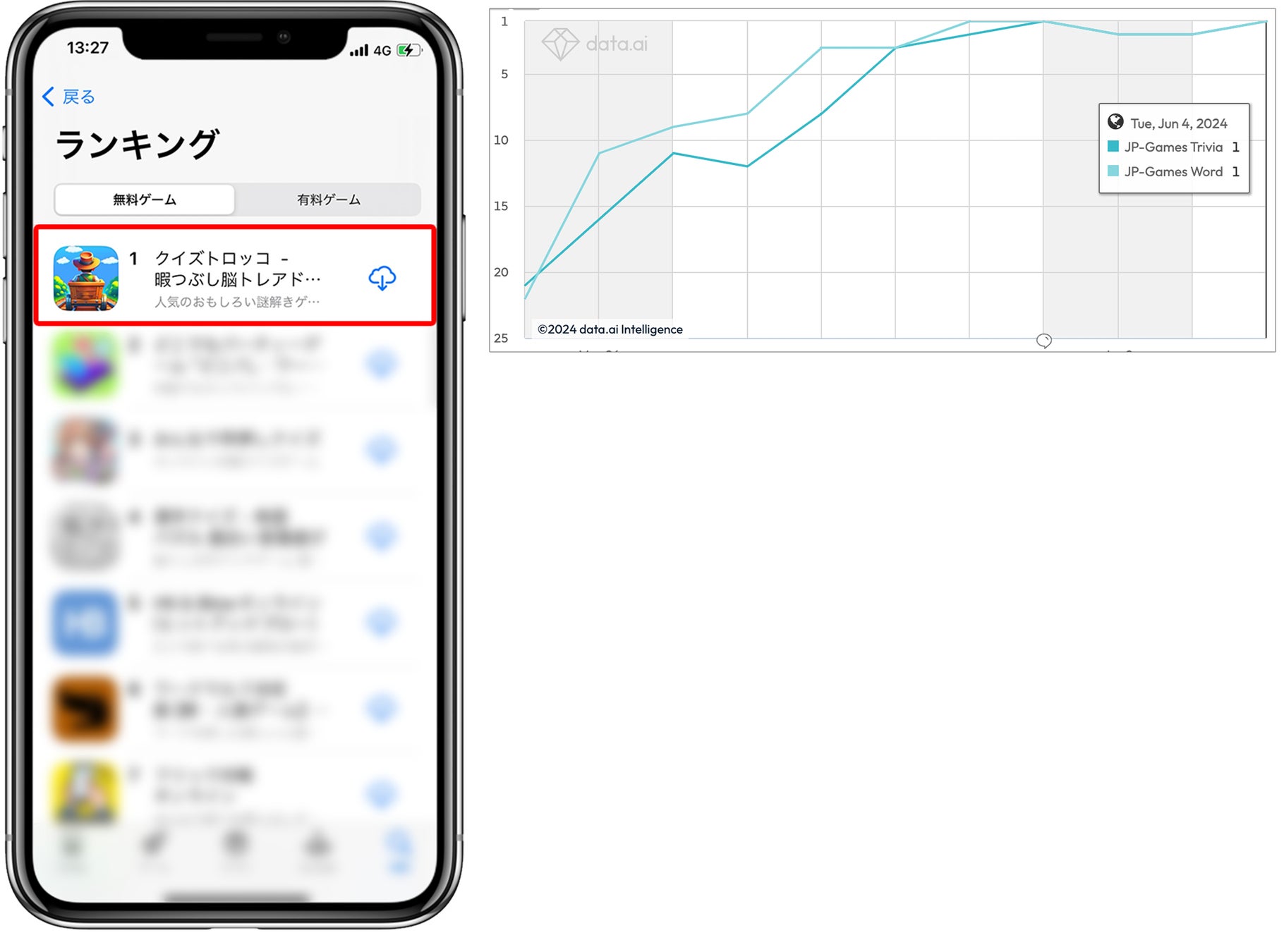 株式会社HENNが開発したハイパーカジュアルゲーム「クイズトロッコ」が、App Storeランキングで1位を獲得しました。