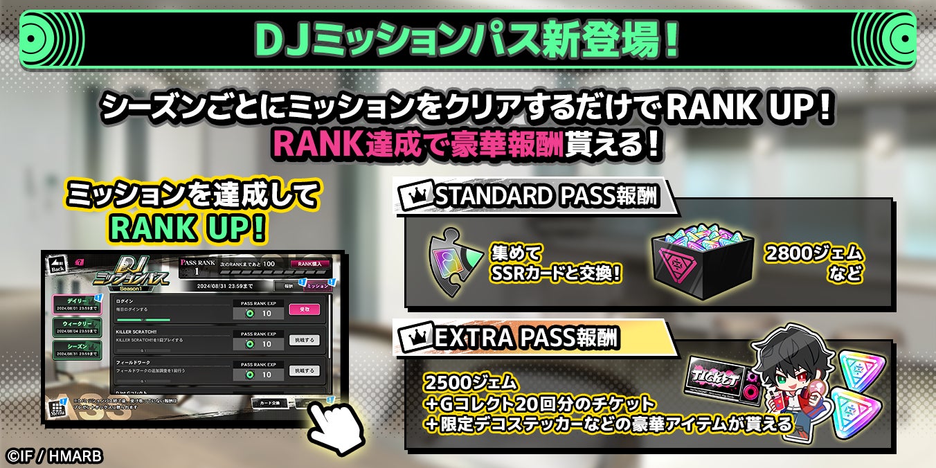 さらに、ログインボーナスや新機能「DJミッションパス」も実施され、豪華報酬が用意されています。