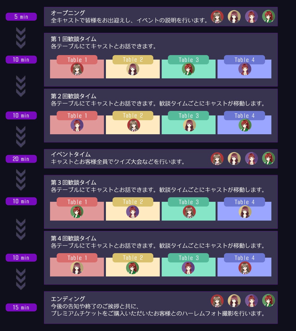 - イベントではキャラクターの衣装に身を包んだキャストたちとの会話や六本木サディスティックナイトの楽曲を流すDJの演出が楽しめる
