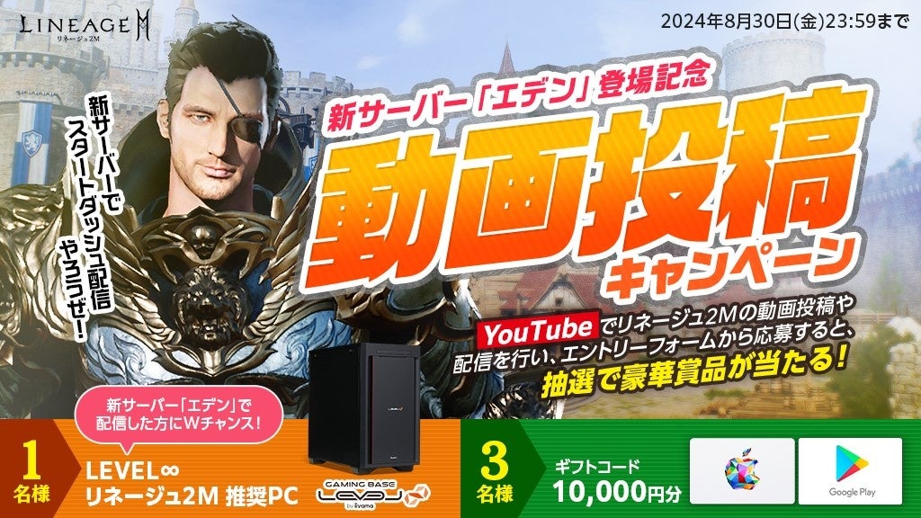 - 動画投稿キャンペーンで豪華賞品(リネージュ2M推奨PC、ギフトカード)を抽選でプレゼント。