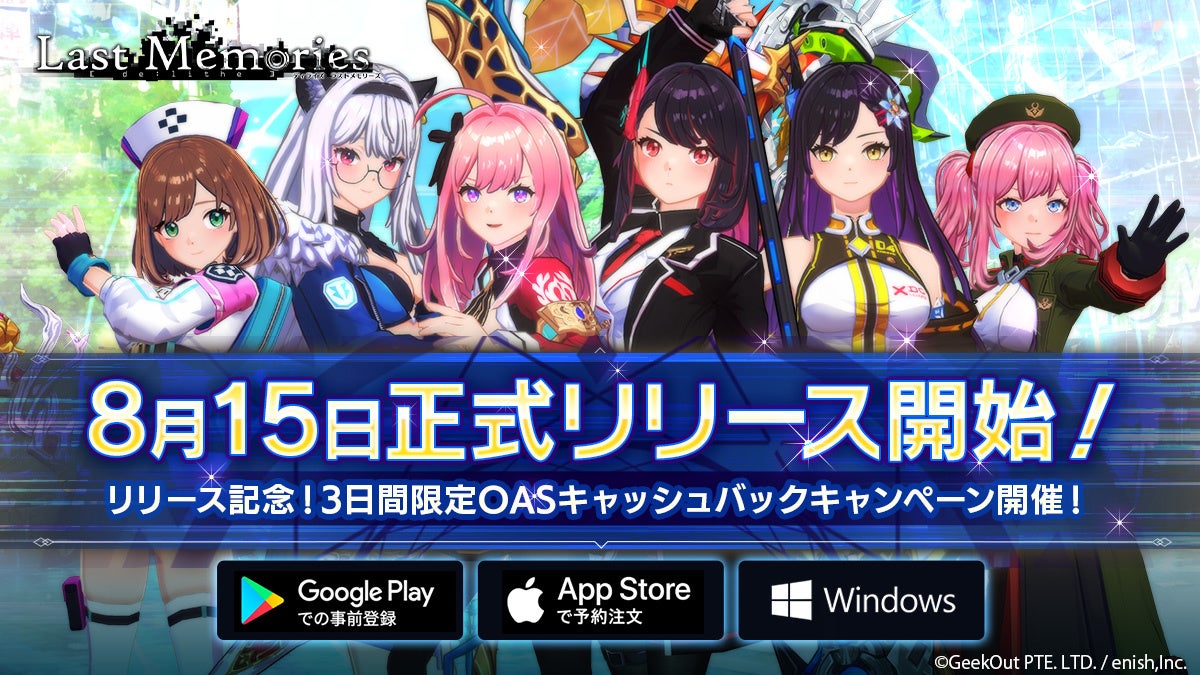 リリース記念として、ガチャチケット30枚がプレゼントされるほか、3日間限定のキャッシュバックキャンペーンも実施されます。