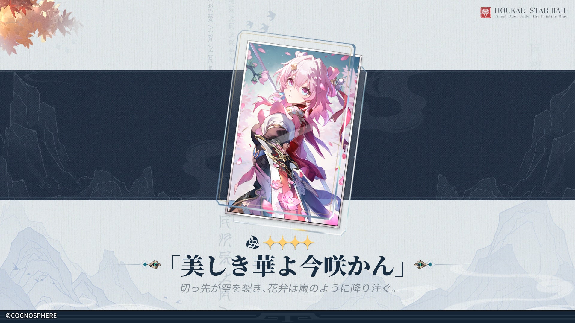 さらに、光円錐のイベント跳躍「光陰を定めし影」では、限定星5光円錐「幾度目かの春」の出現率も向上しており、新たな星4光円錐「美しき華よ今咲かん」も追加されます。