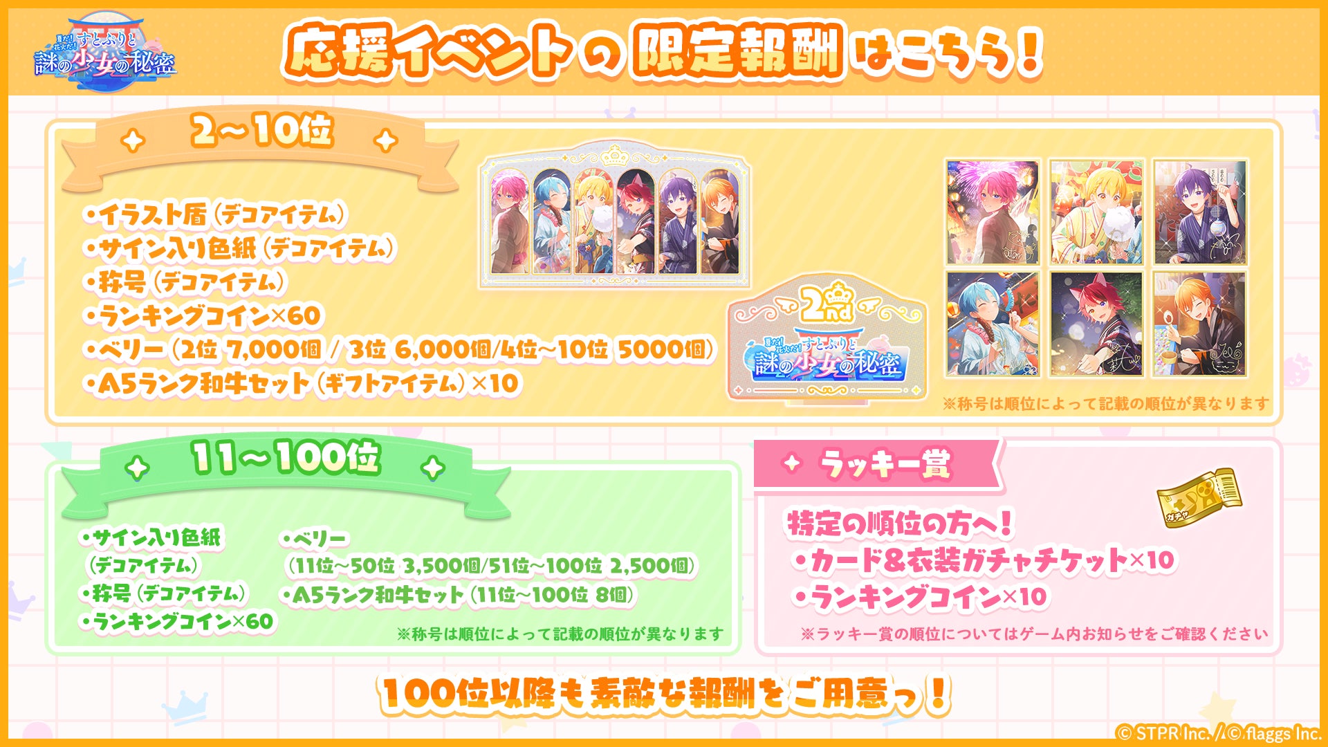 ランキング上位者には特別な報酬が用意されており、全員に報酬も提供されます。