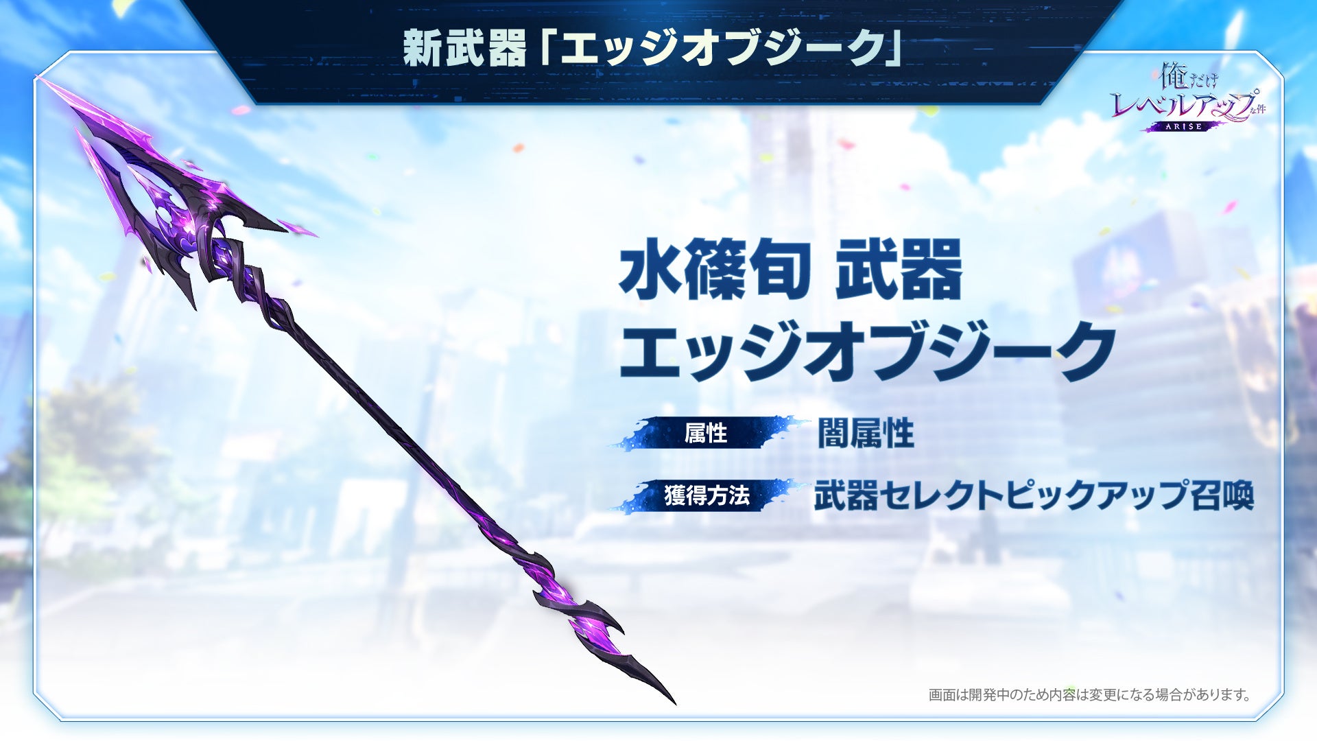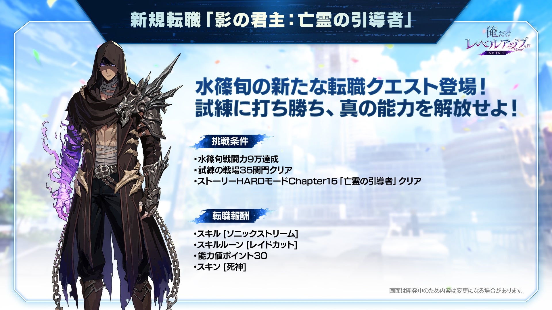 新たに「水篠旬」の職業「影の君主:亡霊の引導者」も追加され、多様な武器が新たに導入されます。