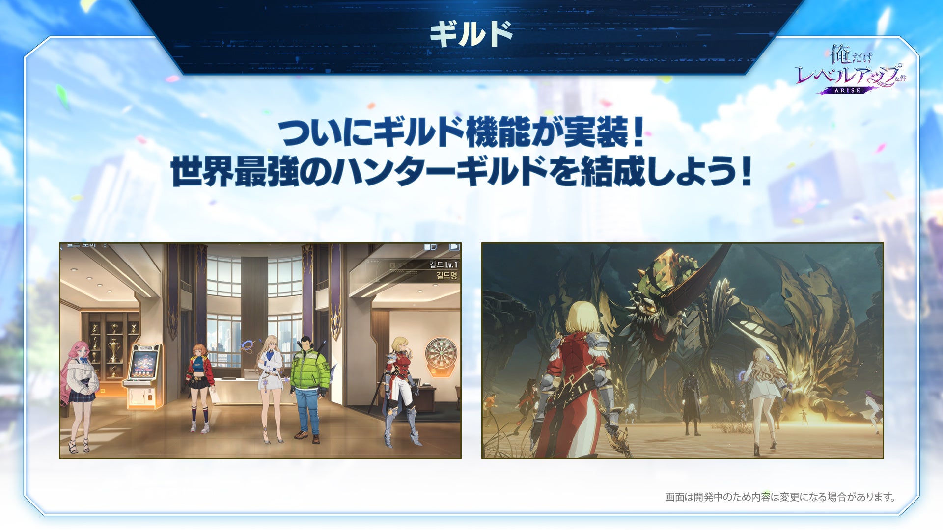 さらに、待望のギルドシステムが実装され、ログインボーナスやミッション、ギルドスキルなどを通じて仲間と協力しながら楽しむことが可能です。