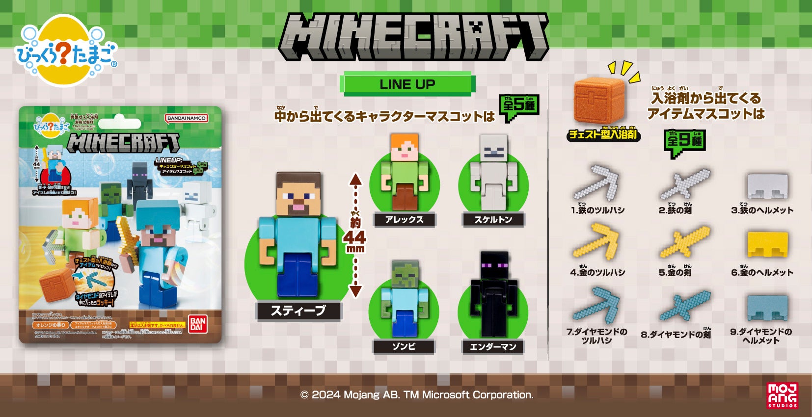 この入浴剤は、全世界で1億人以上のアクティブユーザーを持つ人気ゲームをテーマにしており、マスコット入りの「びっくらたまご」シリーズから登場します。