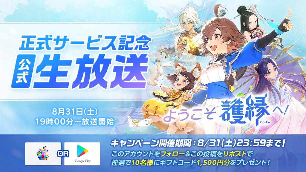 8月31日には「ようこそ護縁へ!正式サービス記念公式生放送」が19時からYouTubeで配信され、ゲームの攻略情報や楽しみ方が紹介されます。
