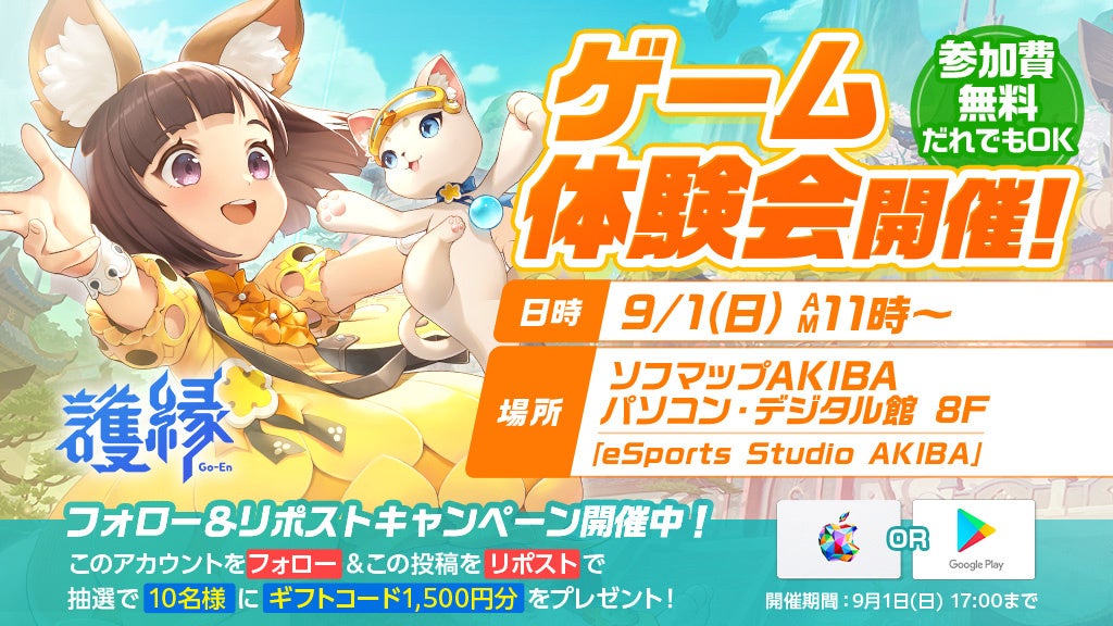 さらに、9月1日には「護縁 ゲーム体験会」がソフマップAKIBAで開催され、先着300名には特製うちわとゲームアイテムクーポン、先着100名にはレッドブルと護縁特製アクリルキーホルダーが贈られます。