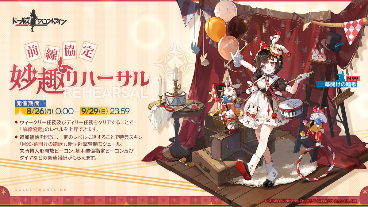 また、8月26日からは「前線協定 妙趣リハーサル」イベントが開催され、ウィークリー任務をクリアすることでM99専用の限定スキン「幕開けの踏歌」を手に入れるチャンスがあります。