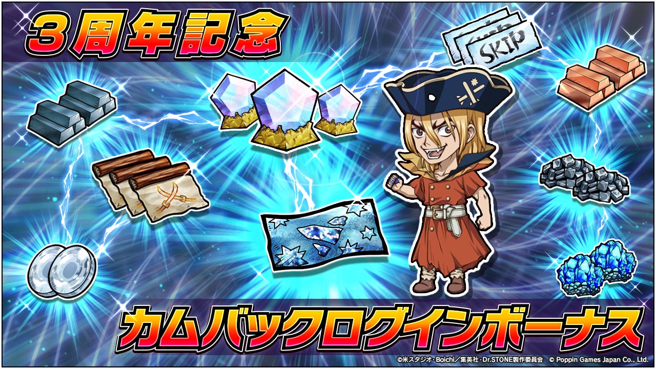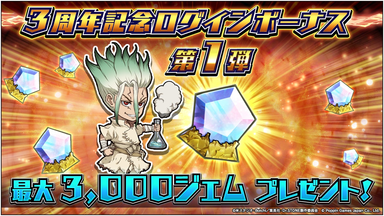 「Dr.STONE バトルクラフト」は3周年を迎え、特別なイベントが開催されます。