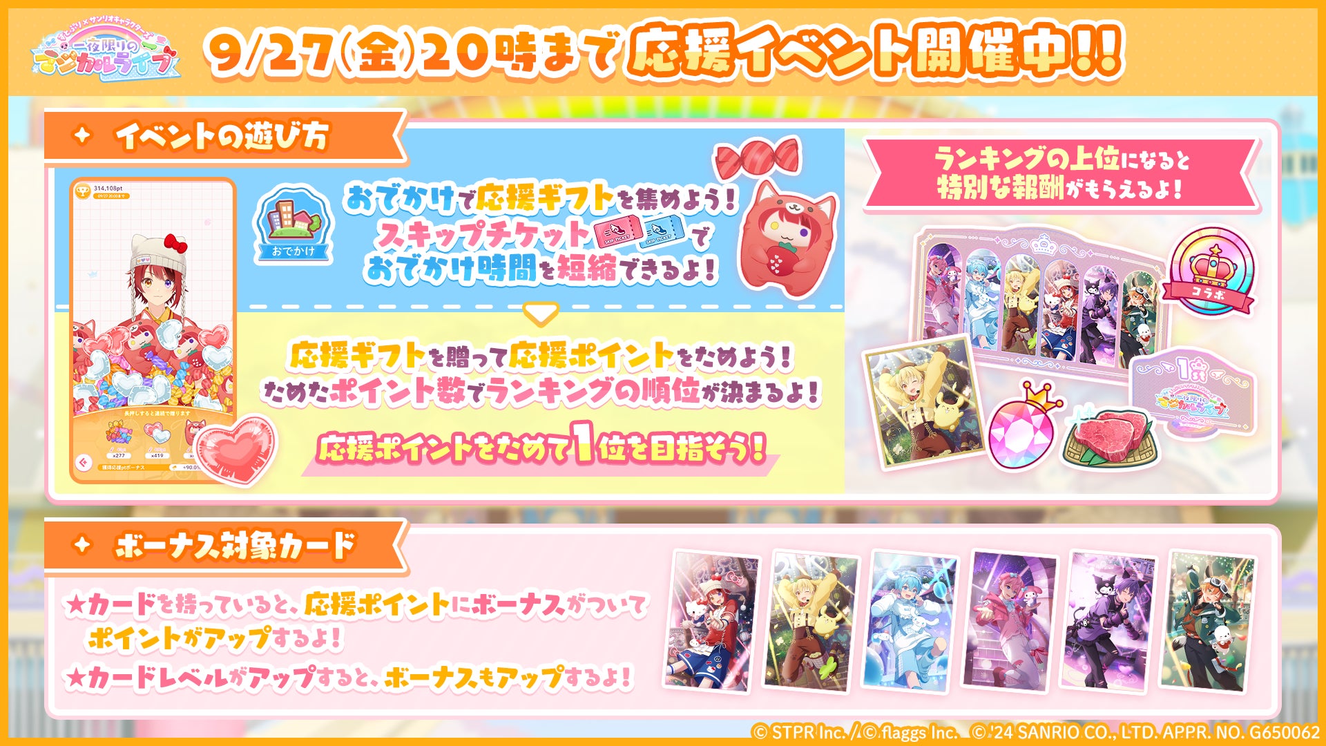 - 9月17日(火)より、サンリオキャラクターズとの期間限定コラボイベント開催。
