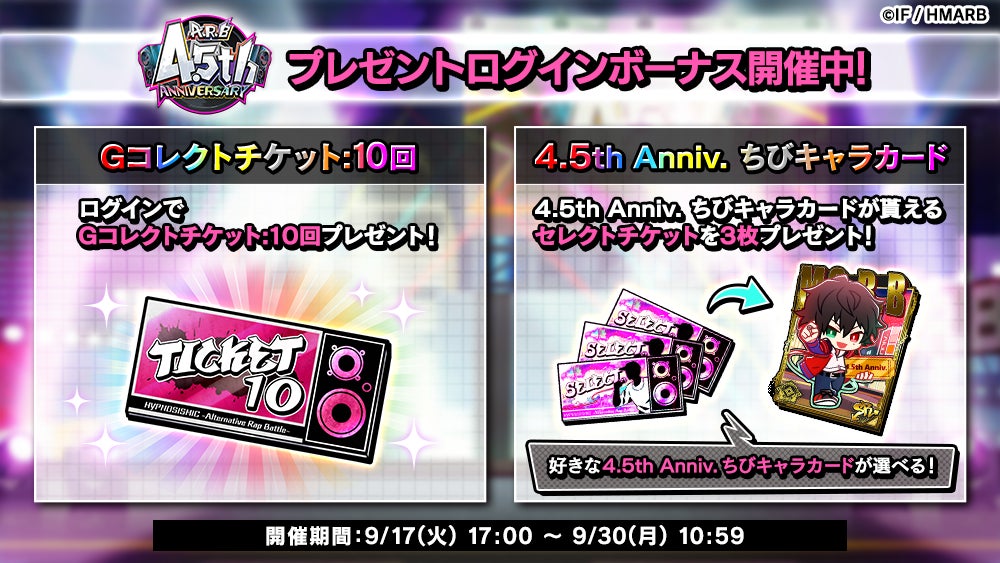 - ゲームアプリ『ヒプノシスマイク Alternative Rap Battle』が2024年9月26日にリリース4年半を記念して「4.5th ANNIVERSARYキャンペーン」を開催。