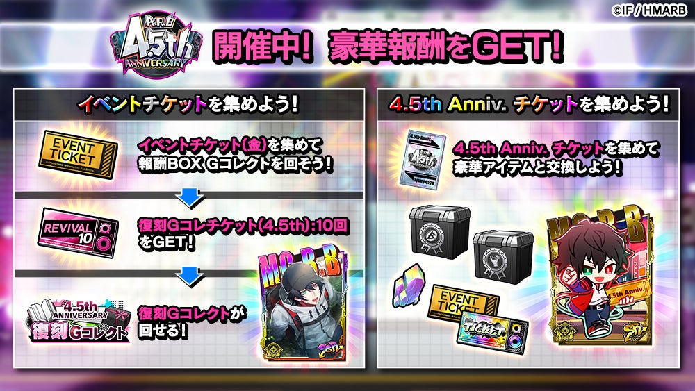 - イベント「4.5th ANNIVERSARY」では、過去のイベント限定SSRカードやバースデーカードなど豪華報酬が獲得可能。