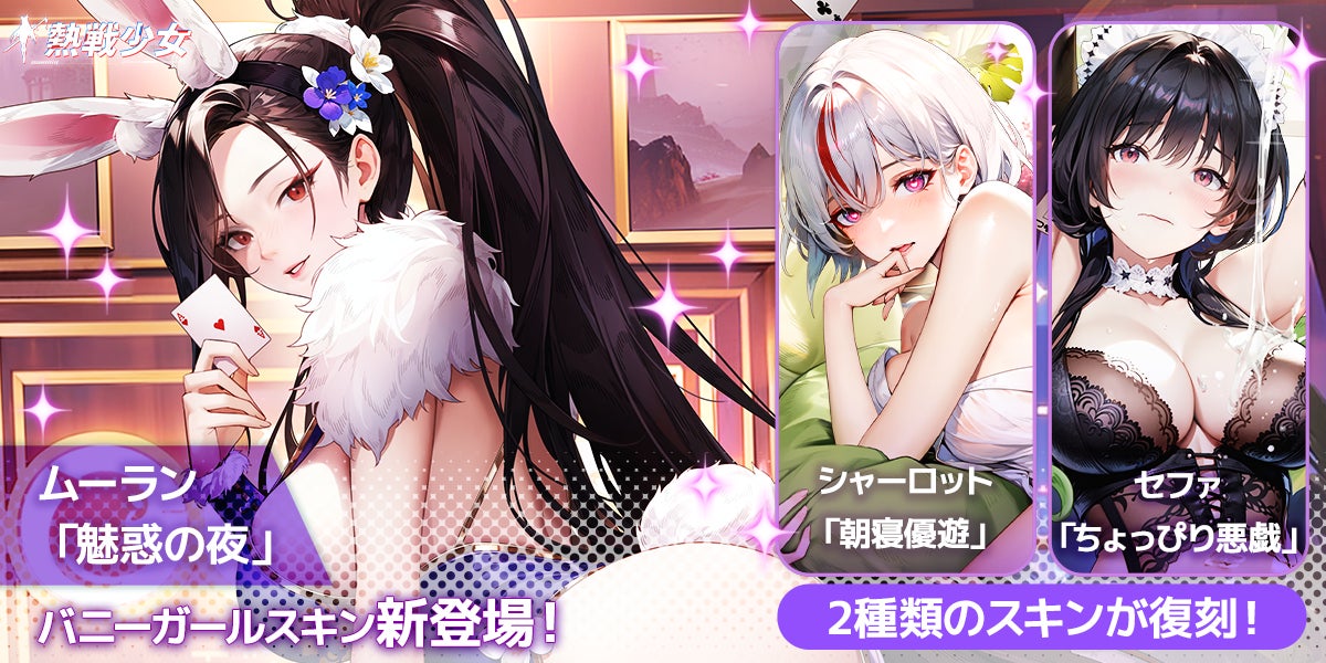 さらに、ムーランのバニーガールスキン「魅惑の夜」が新登場し、シャーロットのスキン「朝寝優遊」、セファのスキン「ちょっぴり悪戯」が復刻で登場します。