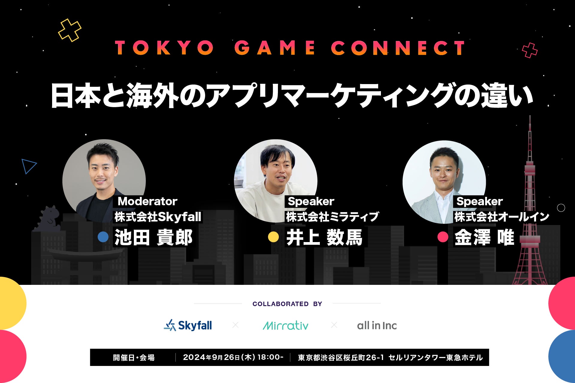 【9月26日開催】東京ゲームショウ アフターパーティー「TOKYO GAME CONNECT 」にSkyfallが登壇決定!「日本と海外のアプリマーケティングの違い」を徹底解説。