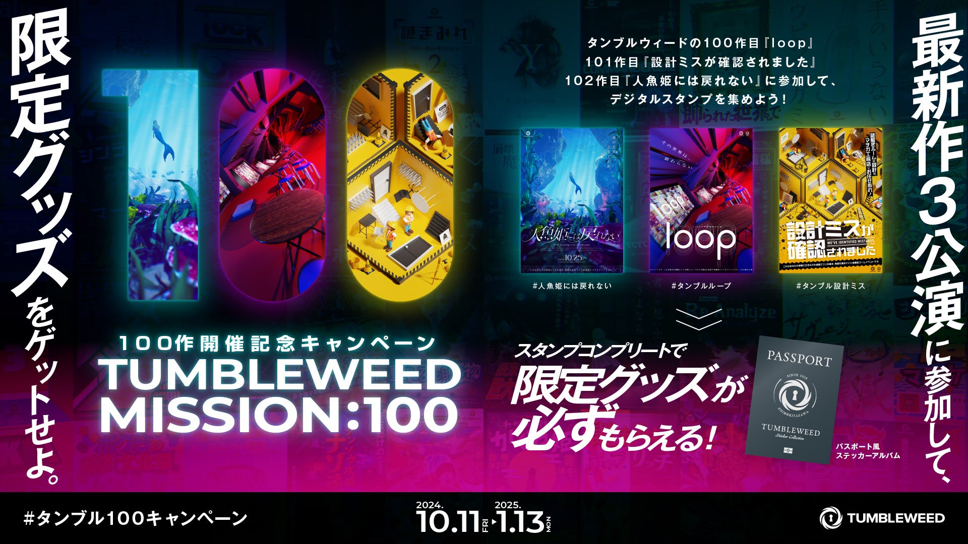 『loop』の開催と同時に、100作目公開記念キャンペーン『TUMBLEWEED MISSION:100』も開催されます。