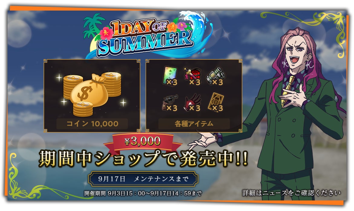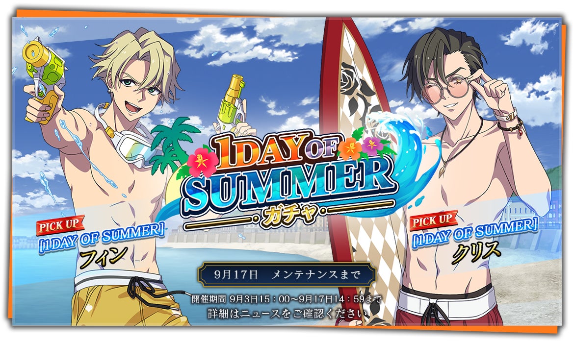 アニメ『HIGH CARD』初のスマートフォン向けゲーム「HIGH CARD -Color of the Pair-」にて、本日より海の思い出を描く新イベント第一弾「1DAY OF SUMMER」が開催されました。