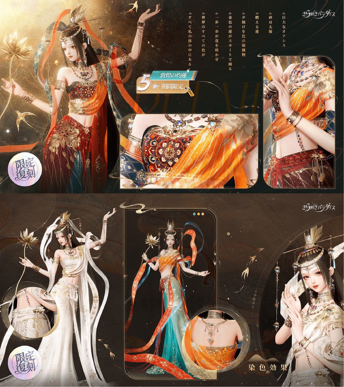 - イベント『千年敦煌』が9月21日より復刻、星5セットコーデ「敦煌の灼熱」と「盛世の華」が入手可能。