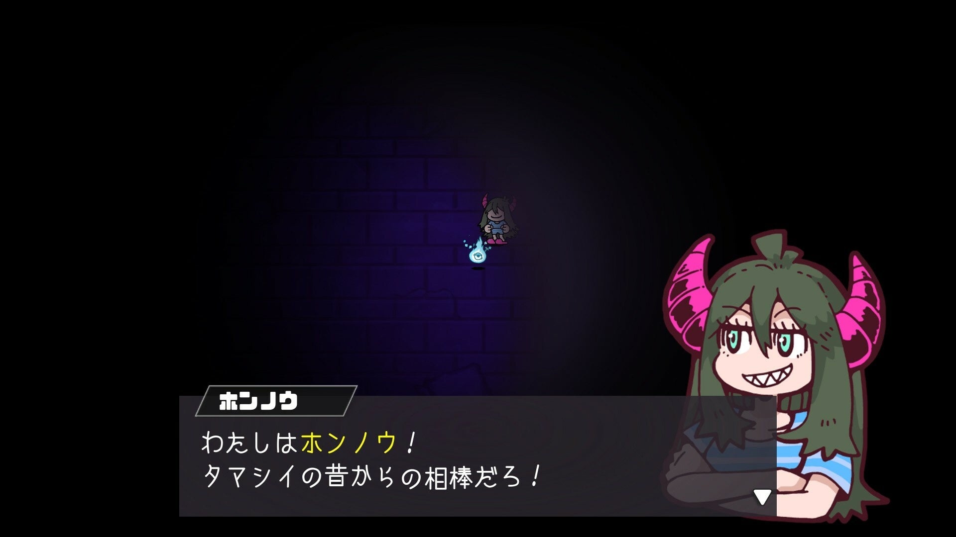 プレイヤーは「タマシイ」となり、敵の「トラウマさん」をパリィで弾き、ホンノウちゃんが自動でトドメを刺すという独特なシステムで戦います。