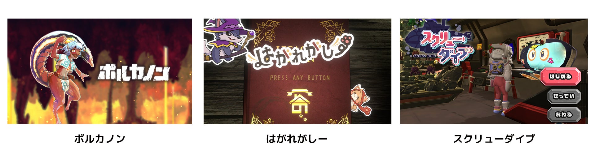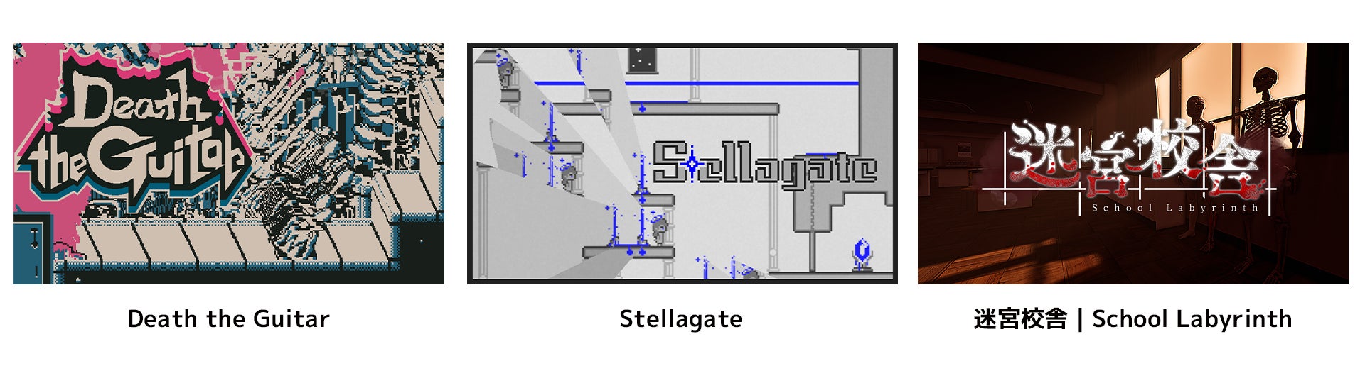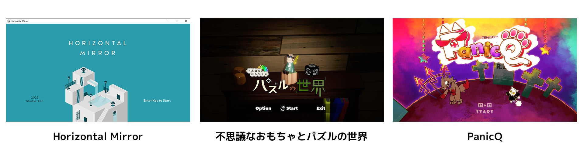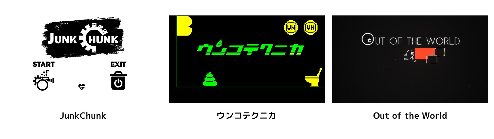 - Death the Guitar、マーダーミステリーパラドクス このひと夏の十五年、Whale Fall、マジカオス | MAGIC CHAOS、ザ・ファブル Manga Build Roguelike、悟遊戯 OHENRO 88、3番線 | Sanbansen、SerialWorld / シリアルワールド、MeloMisterio、JunkChunk、ウンコテクニカ、Out of the World、ボルカノン、はがれがしー、スクリューダイブ、Death the Guitar、Stellagate、迷宮校舎 | School Labyrinth、Horizontal Mirror、不思議なおもちゃとパズルの世界、PanicQ、スゴイツヨイトウフ(The Strongest TOFU)、パーリィナイトメア(Parry Nightmare)、徹夜報告書 | Midnight Report、BlockWorld Ai、TRIERS、Debugger、リポイズン、陰陽解謎、CASSETTE BOY、花連火、死んで死んで強くなれ!?、コミックバチコーン!!
