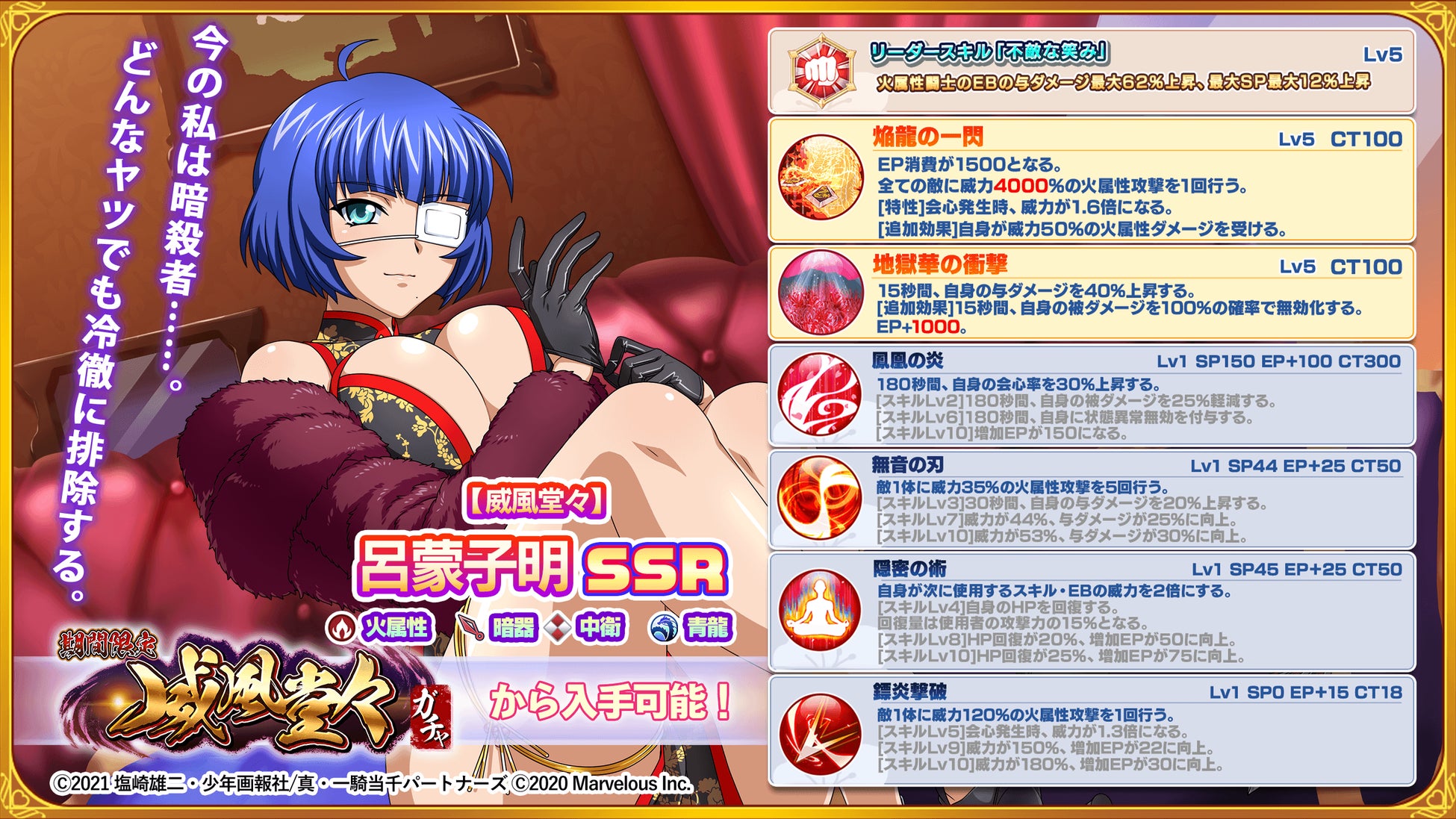 『一騎当千エクストラバースト』では、本日より「バーストフェス」が開催され、新闘士「【威風堂々】呂蒙子明」(CV:甲斐田 裕子)が登場します。