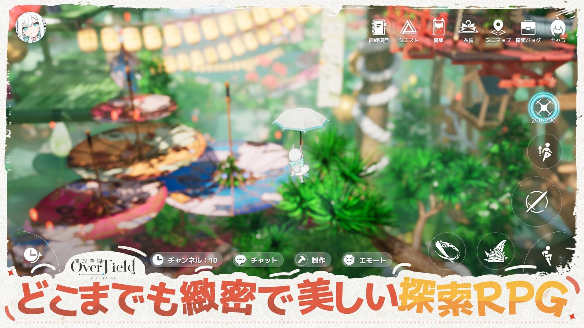 プレイヤーは「ロータラボラトリー」という研究機関に所属し、「瓶詰めの小道」「桜庭の世界」「ベハイムの世界」など、謎めいた空間「オーバーフィールド」で冒険を楽しめます。