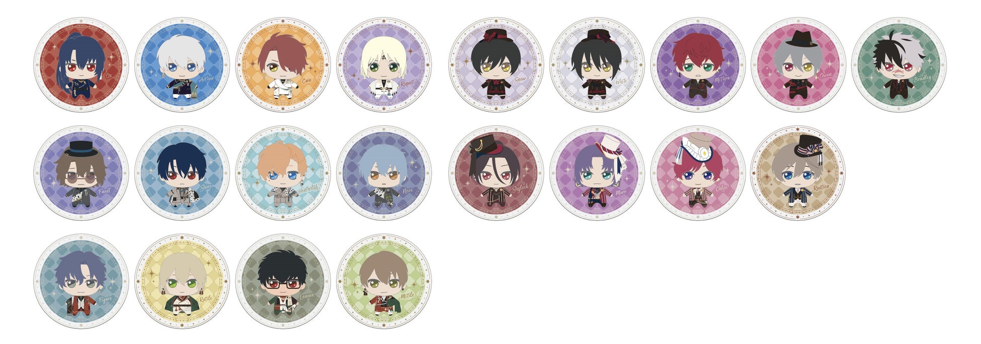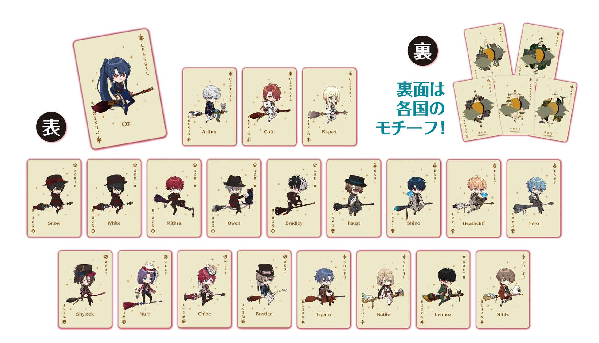 中央の国、北の国、東の国、西の国、南の国、それぞれの国の魔法使いが、可愛らしい姿でラインナップされています。