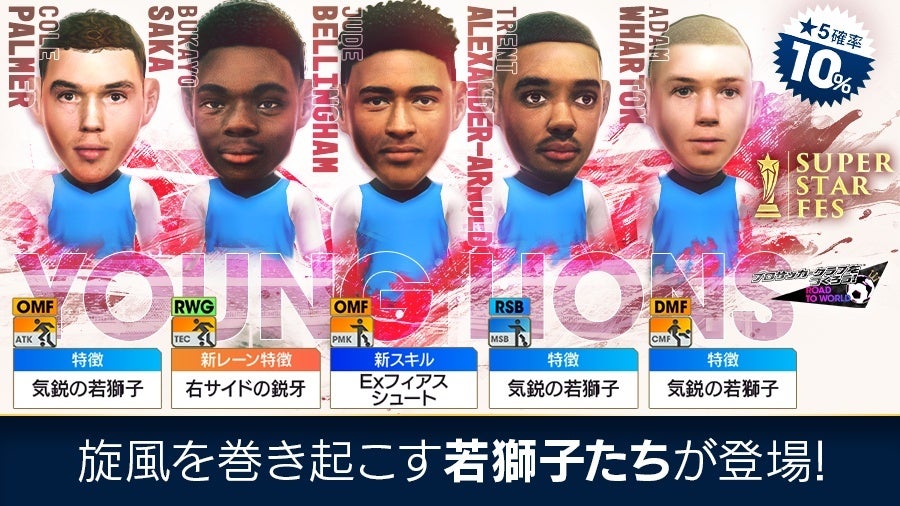 『プロサッカークラブをつくろう! ロード・トゥ・ワールド』(以下「サカつくRTW」)では、2024年9月25日(水)より、イングランドの現役選手たちが新★5選手として登場する“SUPER STAR FES”を開催します。