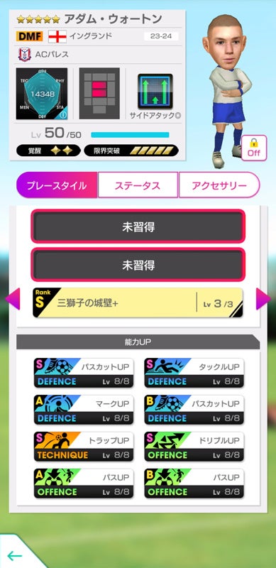 難易度「ベリーハード」の各ステージでは、選手の能力をアップさせるアクセサリーが入手でき、最終ステージでは「三獅子」の虹アクセサリーが登場します。