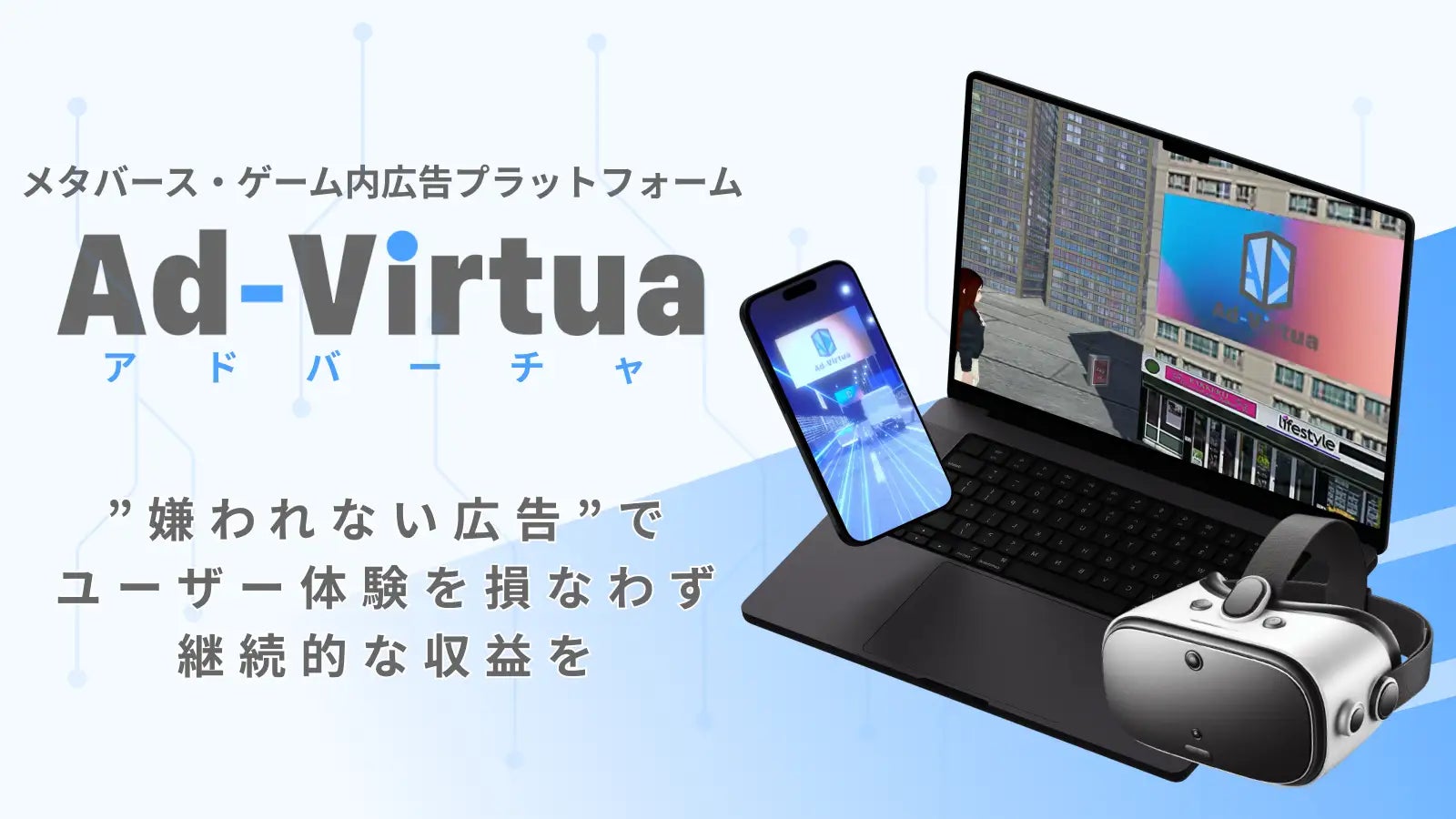 アドバーチャは、メタバース・ゲーム内動画広告プラットフォームで、ゲーム内に設置されたモニターから広告配信することで、ユーザーのゲームプレイを中断することなく、継続的な収益源を提供します。