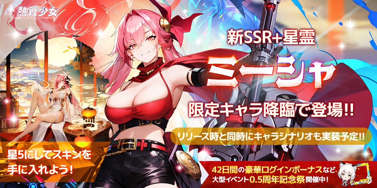 終末世界放置系RPG『熱戦少女』にて、新SSR+星霊「ミーシャ」が登場!大型イベント「0.5周年記念祭」が開催中です。