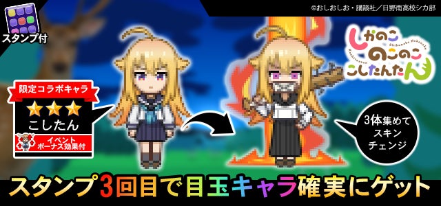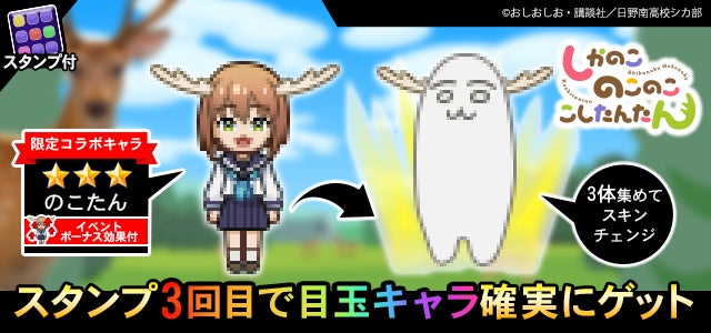 さらに、コラボ限定マップでは、コラボ限定鬼「シカ」が登場し、限定ガチャでは「のこたん」「こしたん」が手に入ります。