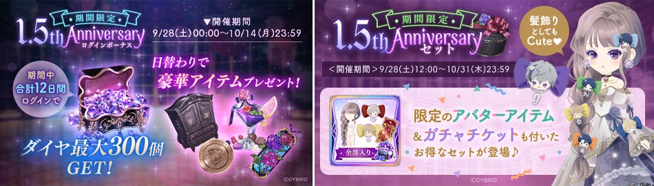 さらに、1.5周年を記念したログインボーナスやお得なセットも販売中です。